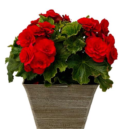 Begonia Rieger Veronica Red in a 12-in Grey Pot
