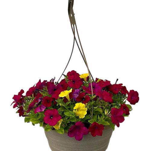 Fruit Pizza Petunia Combo in a 12-in Grey Hanging Basket