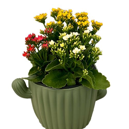 Kalanchoe Trio with Pink, White, and Yellow in an 8-in Cactus Shaped Container
