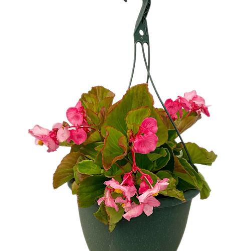 Begonia Tophat Pink in a 10-in Olive Green Hanging Basket