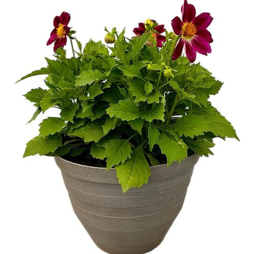 Dahlia Summer Bees Purple Bicolor in a 12-in Grey Pot