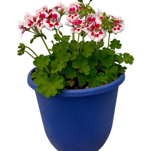 Geranium Santana White Splash in a 10-in Blue Pot