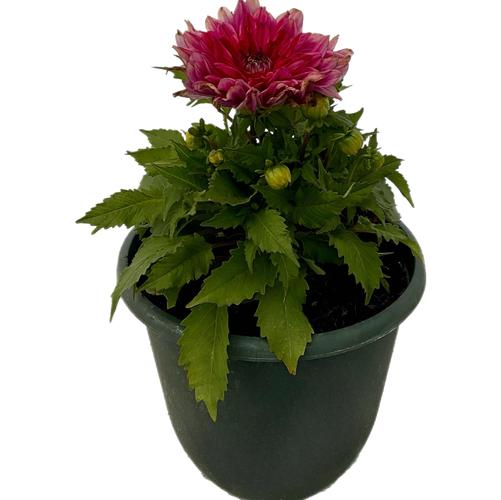 Dahlia Megaboom Raspberry Ice in a 10-in Olive Green Pot
