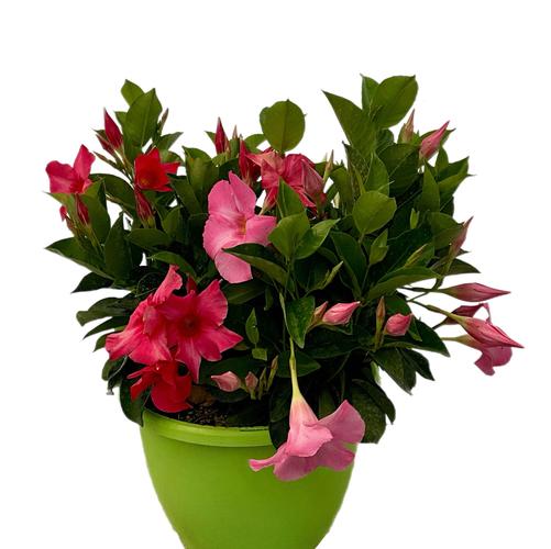 Dipladenia Trio with Coral, Pink, and white in a 10-in Neon Green Pot