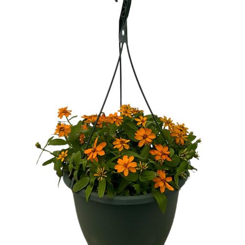 Zinnia Belize Double Orange in a 10-in Kale Green Hanging Basket