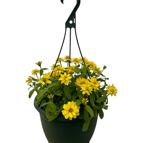 Zinnia Belize Double Yellow in a 10-in Kale Green Hanging Basket