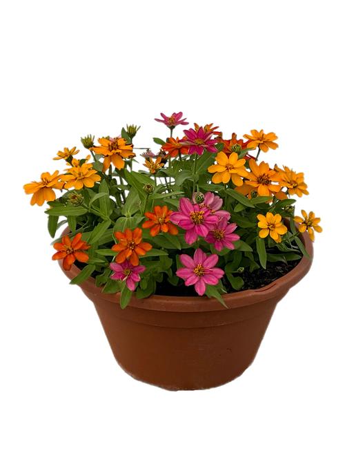 Zinnia Duo Fuchsia and Yellow in a 10-in White Pot