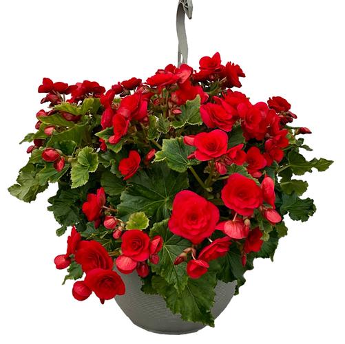 Begonia Elatior Move2 Passion Red in a 12-in Gray Hanging Basket