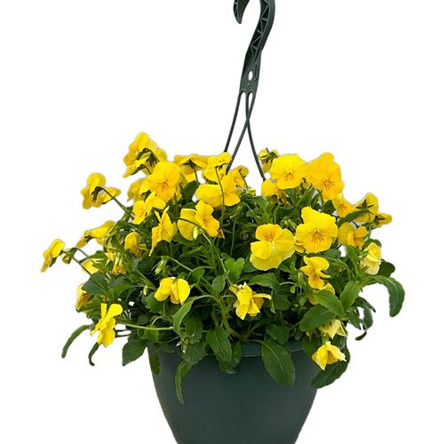 Pansy Trailing- Freefall Golden Yellow in a 10-in Kale Green Hanging Basket