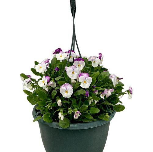 Pansy Trailing Freefall White Rose Wing in a 10-in Olive Green Hanging Basket