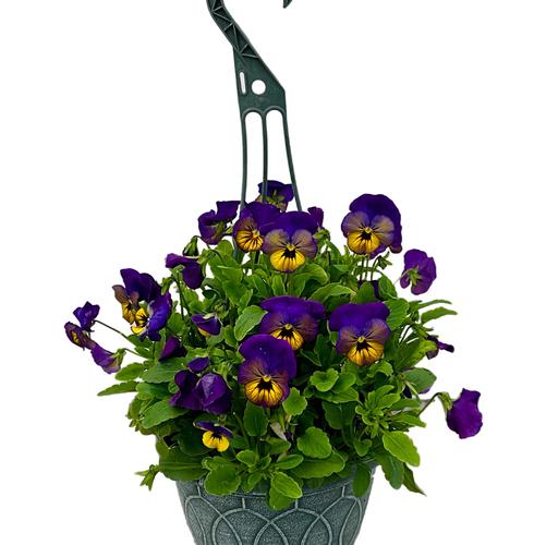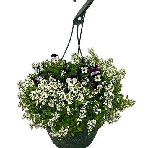 Viola Combo Penny Mickey with White Alyssum in a 10-in Kale Green Hanging Basket
