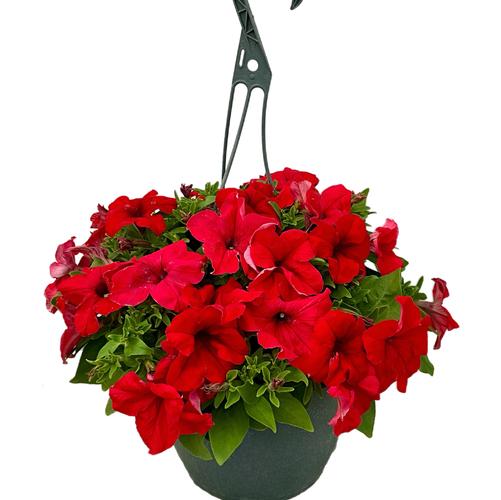 Petunia Pretty Grand Red in a 10-in Green Kale Hanging Basket