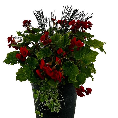 Begonia Elatior Move2 Passion Red combo with Dichondra and Juncus in a 3-gallon Black Pot