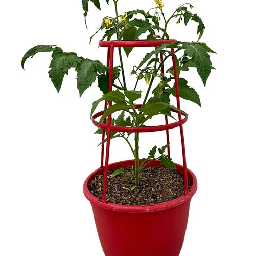 Vegetable Tomato Roadster in a 10-in Red Pot with a Cage.