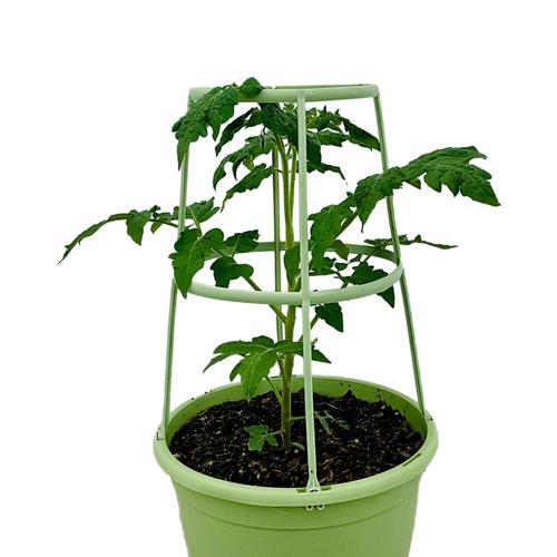 Vegetable Tomato Roadster in a 10-in Green Pot with a Cage.