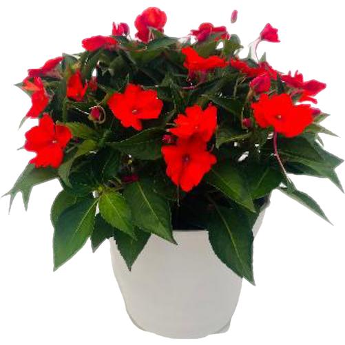 Impatiens Sunpatiens Compact Deep Red in a 10-in White Pot