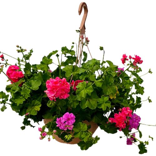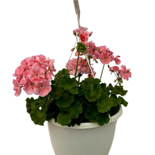 Geranium Big Eeze Watermelon in a 10-in White Hanging Basket