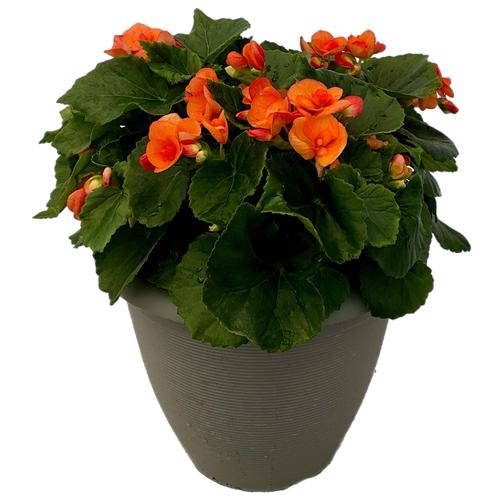 Begonia Rieger Dark Britt Orange in a 12-in Ribbed Grey Pot