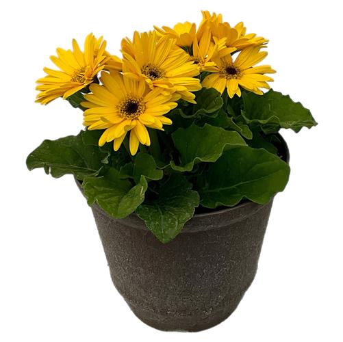 Gerbera Daisy Colorbloom Yellow with Dark Eye in an 8-in Brown Pot