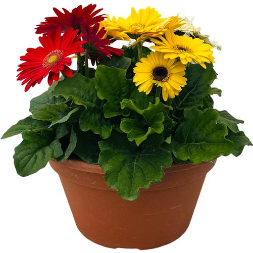 Gerbera Daisy Colorbloom Orange Yellow in a 10-in White Pot