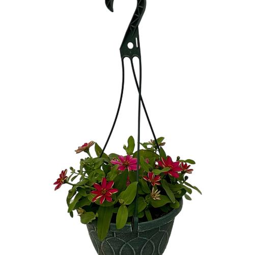 Zinnia Belize Rose in an 8-in Olive Green Hanging Basket