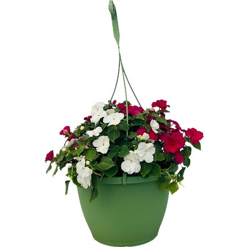 Impatiens Xtreme Rosy Mix in a 10-in Green Hanging Basket