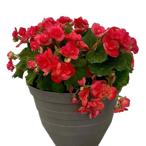 Begonia Rieger Veronica Red in a 12-in Grey Pot