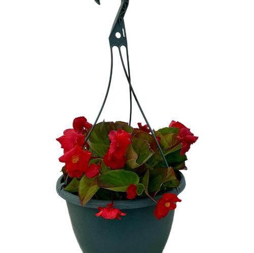 Begonia Tophat Scarlet in a 10-in Olive Green Hanging Basket