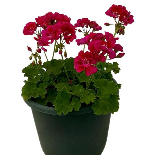 Geranium Santana Dark Red in a 10-in Kale Green Pot