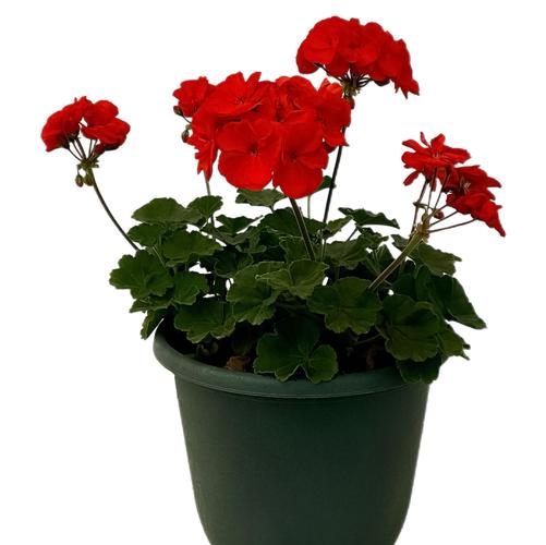 Geranium Savannah Hot Rod Red in a 10-in Kale Green Pot