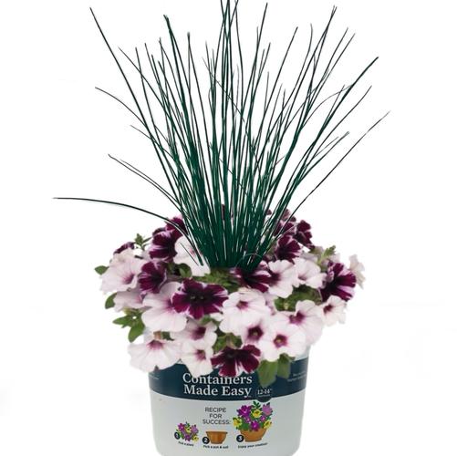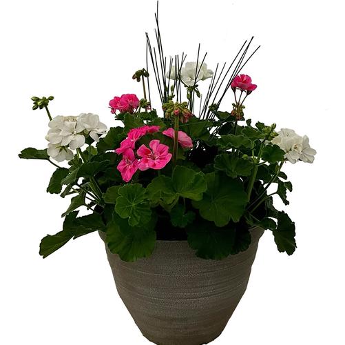 Geranium Jazz Savannah Pink and White with Juncus Spike in a 12-in Grey Pot