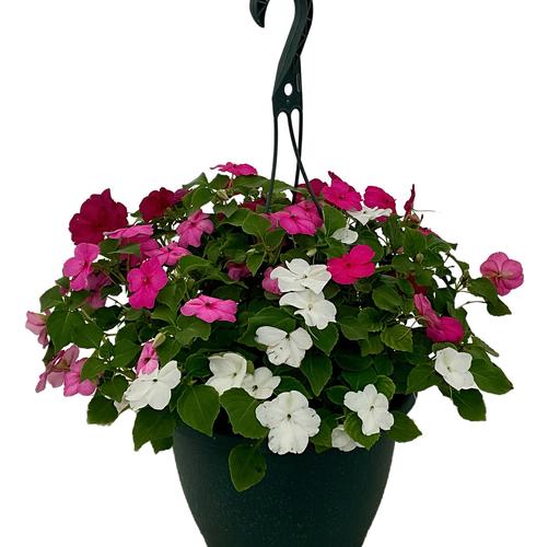 Impatiens Xtreme Rosy Mix in a 10-in Kale Green Hanging Basket