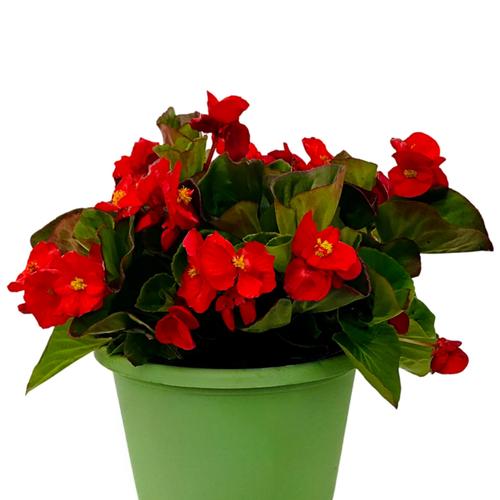 Begonia Tophat Scarlet in a 10-in Green Pot