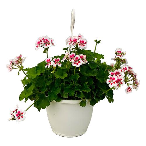 Geranium Santana White Splash in a 10-in White Hanging Basket
