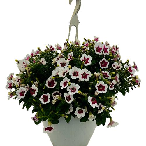 Petunia Amore-Queen of Hearts in a 10-in White Hanging Basket