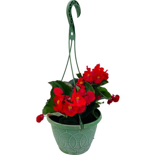 Begonia Tophat Scarlet in a 10-in Green Hanging Basket
