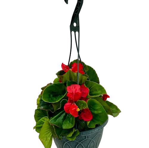 Begonia Tophat Scarlet in an 8-in Dark Green Hanging Basket