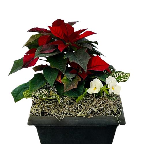 Red Poinsettia Combo in an 11-in Tall Square Pot