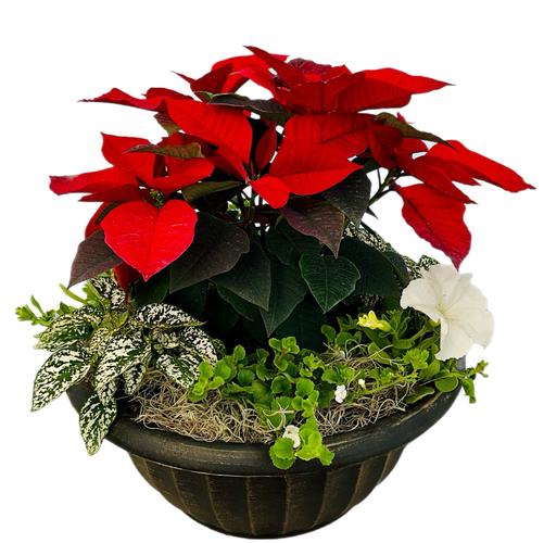 Poinsettia Combo in a 14-in Bowl. Combinations may vary based on component availability.