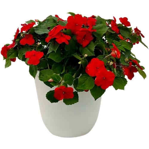 Impatiens Sunpatiens Compact Deep Red in a 10-in White Pot