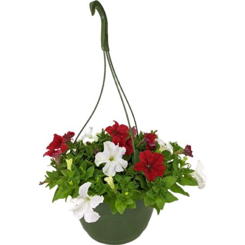 Petunia Duo Pretty Grand Red and White in a 10-in Green Hanging Basket