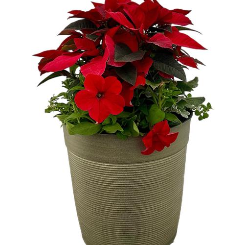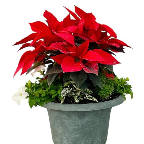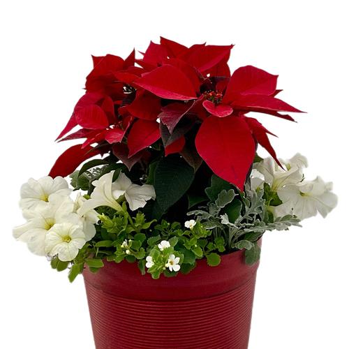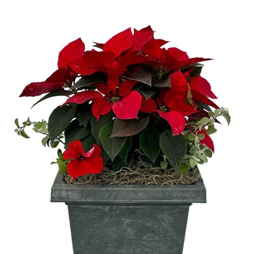 Red Poinsettia Combo in an 11-in Tall Square Pot