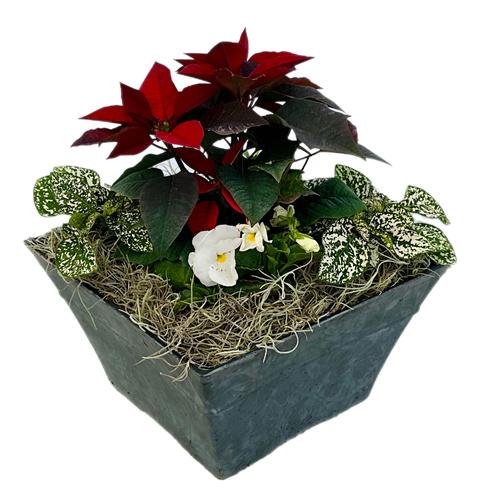 Red Poinsettia Combo in an 11-in Short Square Pot