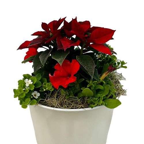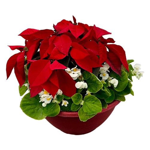 Poinsettia Combo with Red Poinsettia and Begonia Bada Bing White in a 12-in Red Bowl