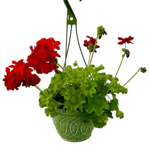 Geranium Santana Dark Red in an 8-in Olive Green Hanging Basket